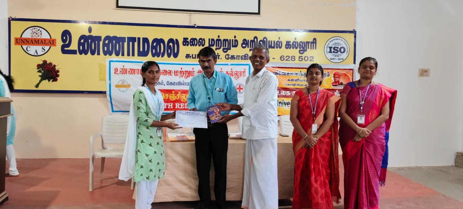 நிகழ்வுக்கான ஏற்பாடுகளை தமிழ்த்துறை உதவிப்பேராசிரியர் பாரதி, இளம் செஞ்சிலுவைச் சங்க ஒருங்கிணைப்பாளர் முத்து ராஜா மற்றும் பேராசிரியர்கள் செய்திருந்தனர்.