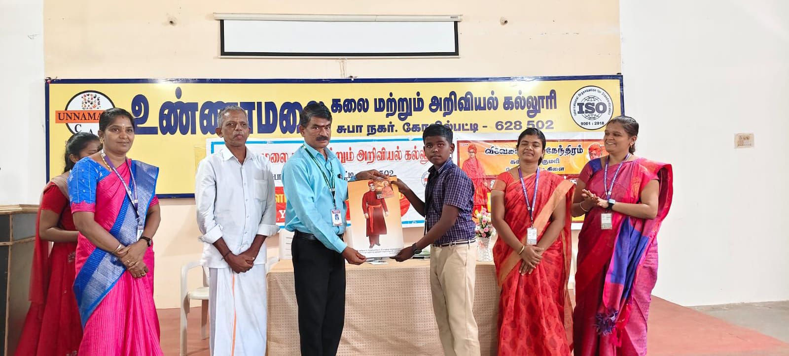விவேகானந்த கேந்திரத்தின் பிரதிநிதி பரமகுரு சிறப்பு விருந்தினராகக் கலந்து கொண்டு, விவேகானந்தரின் சிந்தனைகள், சகோதரத்துவத்தின் மகத்துவம் மற்றும் இளைஞர்கள் சமூகத்தில் வகிக்க வேண்டிய பங்கு குறித்து உரையாற்றினார். அவரது ஊக்கமளிக்கும் சொற்பொழிவு மாணவர்களுக்குள் புதிய சிந்தனையையும் சமூகப் பொறுப்புணர்வையும் விதைத்தது.