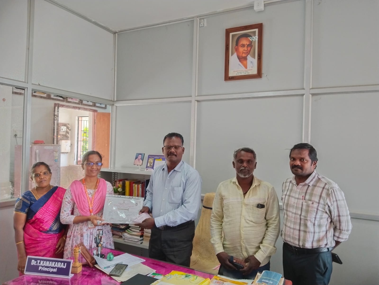 மாணவியை கல்லூரியின் சார்பாக முதல்வர். கனகராஜ் , ஆசிரியர்கள், மாணவர்கள் மற்றும் நிர்வாகத்தினர் பாராட்டினார்கள்.