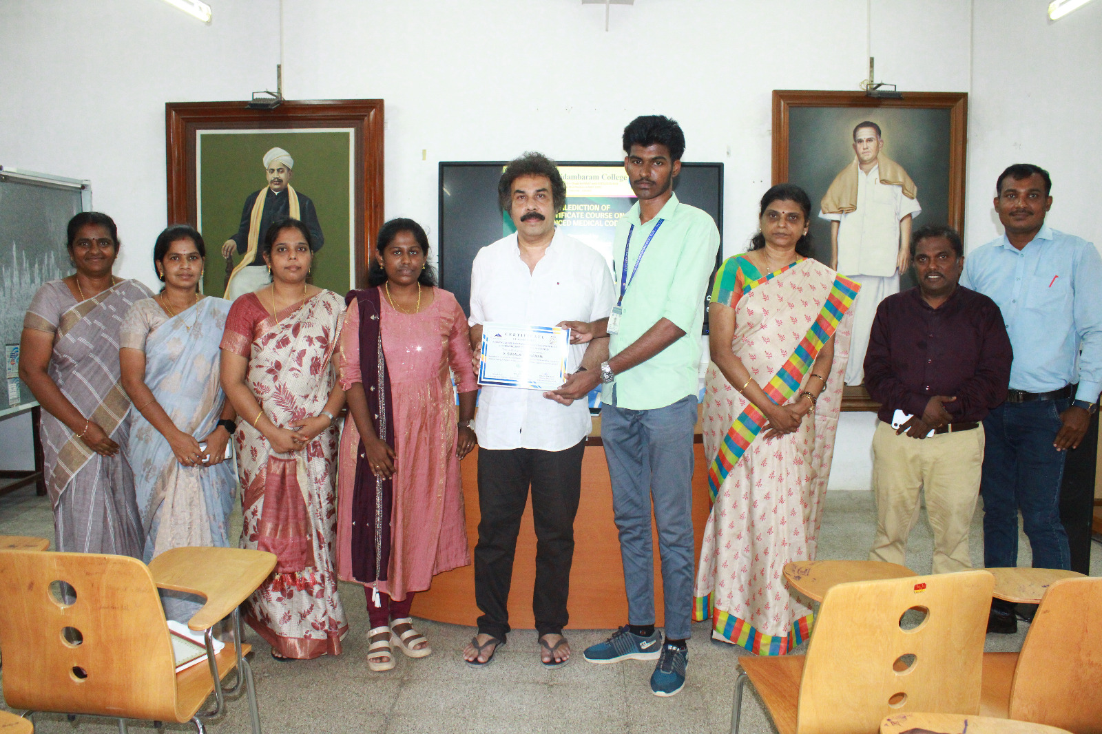அவர்களுக்கு கல்லூரி முதல்வர் டாக்டர். வீரபாகு சான்றிதழ்களை வழங்கினார்.