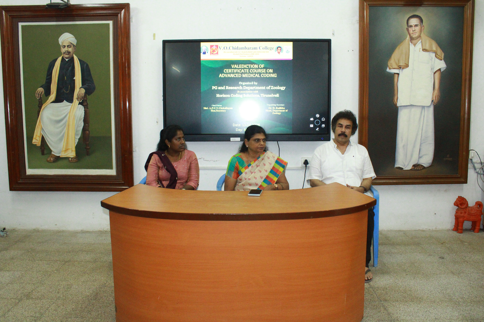 தூத்துக்குடி வ.உ.சிதம்பரம் கல்லூரியின் விலங்கியல் முதுநிலை மற்றும் ஆராய்ச்சித்துறை, திருநெல்வேலியைச் சேர்ந்த கொரைசன் கோடிங் சொலுஷன்ஸ் நிறுவனத்துடன் இணைந்து, மேம்பட்ட மருத்துவ குறியீட்டியல் (Advanced Medical Coding) குறித்த 60 மணி நேர சான்றிதழ் பாட வகுப்பை நடத்தியது.